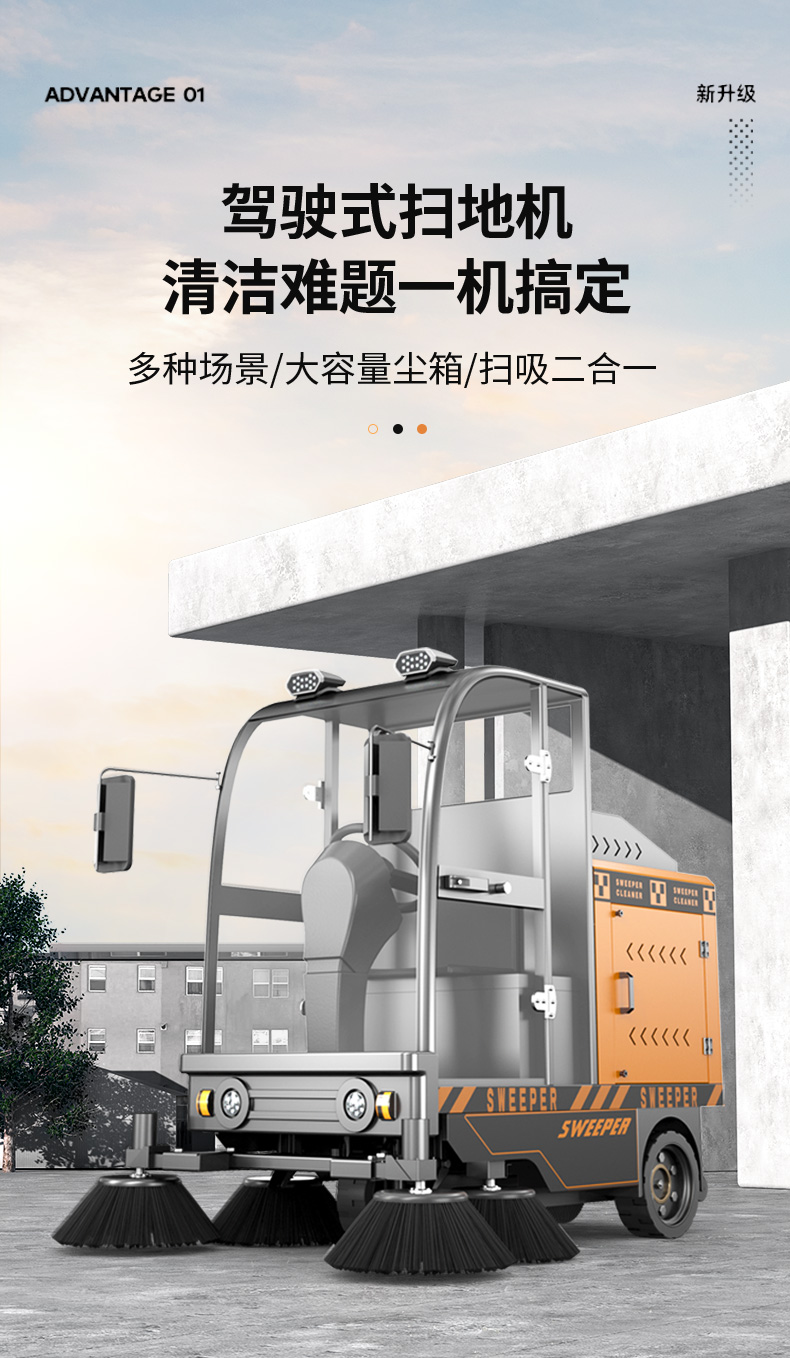 榮事達(dá)RS-CAR180 駕駛式掃地機(jī)配備了風(fēng)扇,無需擔(dān)心夏季長時(shí)間戶外使用時(shí)的高溫問題。方向盤操作更加靈活方便,配...